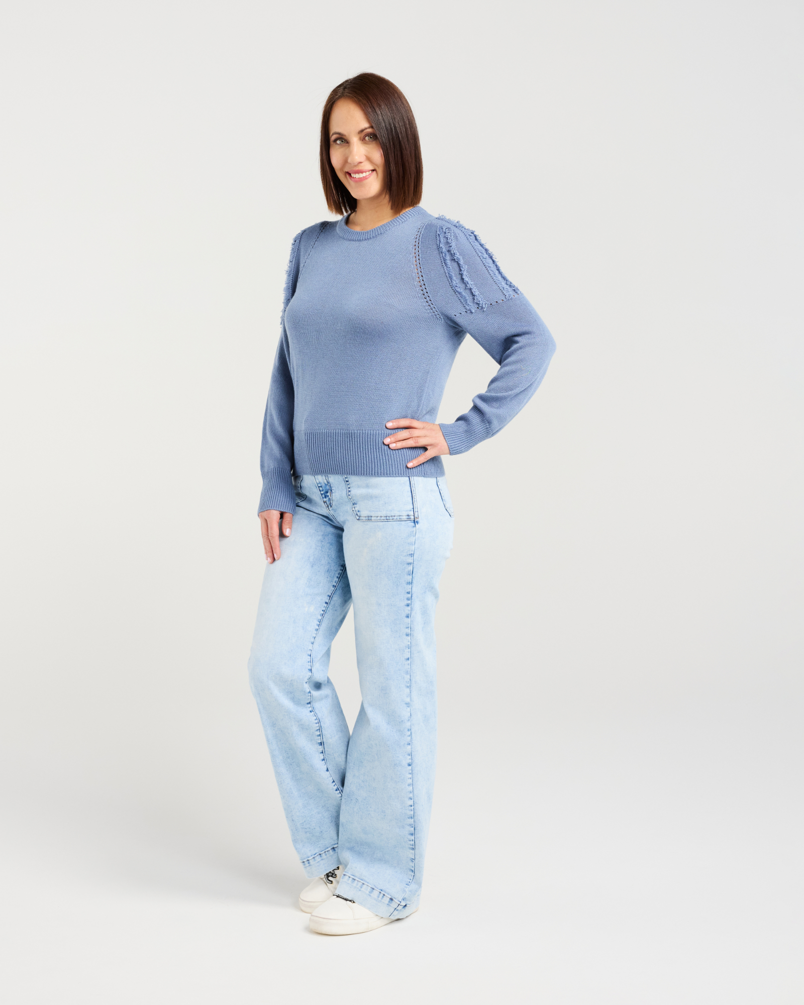 This long-sleeve knit features subtle detailing on the shoulders, adding texture and visual interest to a classic silhouette. Soft and stylish, it�s an effortlessly elegant piece for everyday wear.
